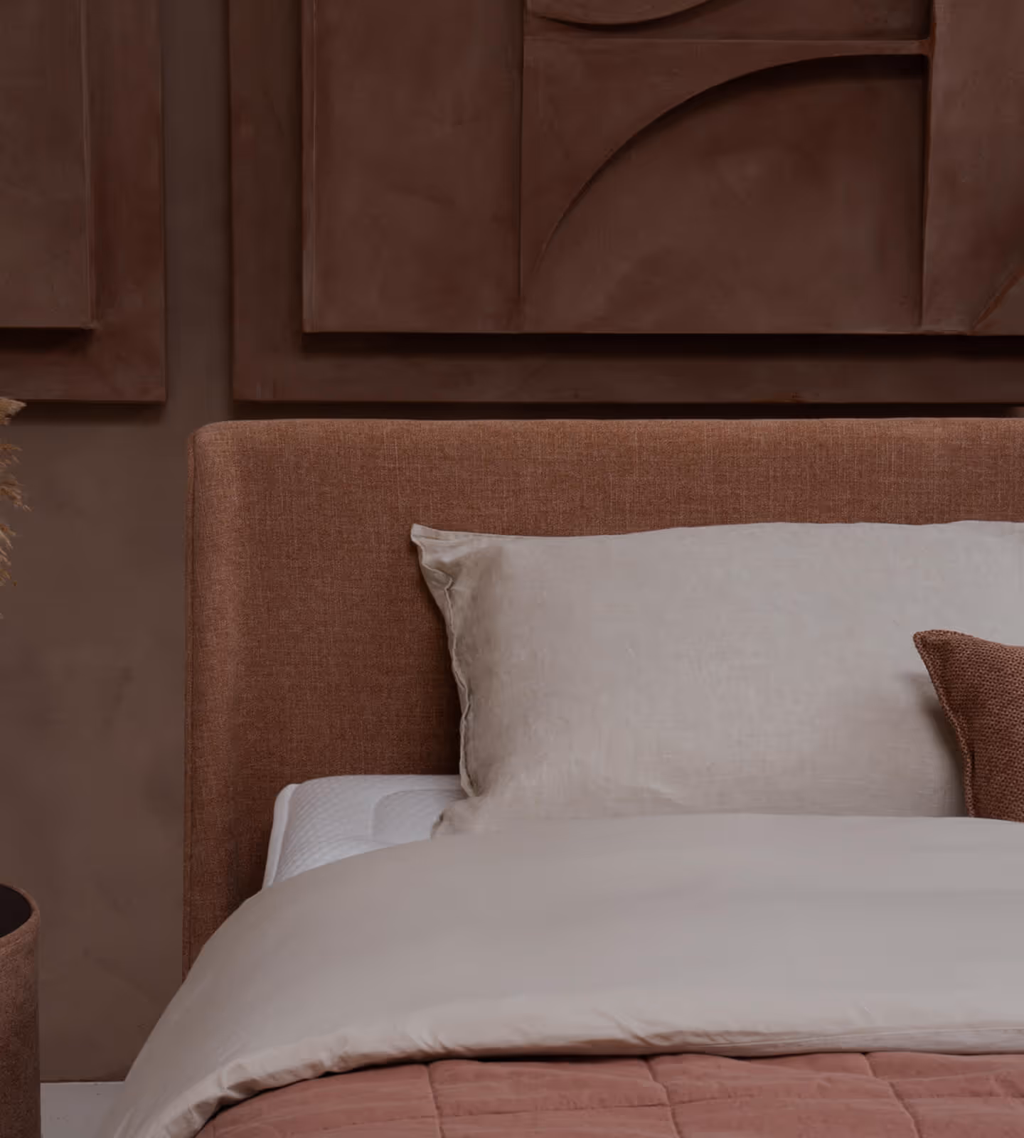 Onze bedden zijn verkrijgbaar met frames in drie zorgvuldig gekozen kleuren: black, desert of pearl brown. Zo stem je het ontwerp moeiteloos af op jouw interieur, altijd in balans.